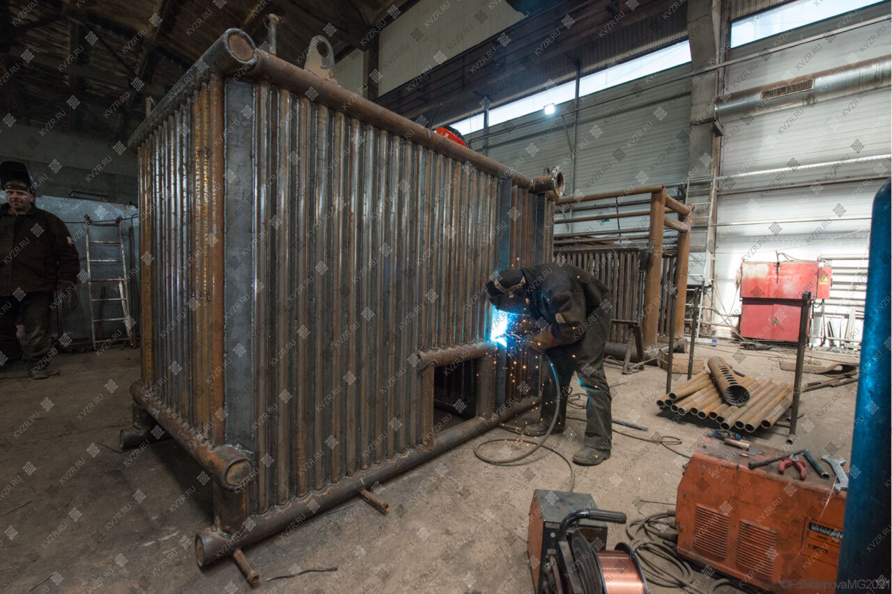 Все водогрейные котлы 2200 кВт нашего производства - стальные, горизонтальные, водотрубные, прямоточные и компактные. Трубная часть котельного блока выполняется из труб различных диаметров, материал труб сталь 10 и 20. Блок снаружи обваривается стальной охлаждаемой полосой, поэтому в наших котлах исключена возможность задымления котельного зала. Снаружи на каркас из профильной трубы и швеллера крепится утеплитель и декоративная обшивка из полимерного листа. В обшивке предусмотрены лючки для очистки поверхностей нагрева.