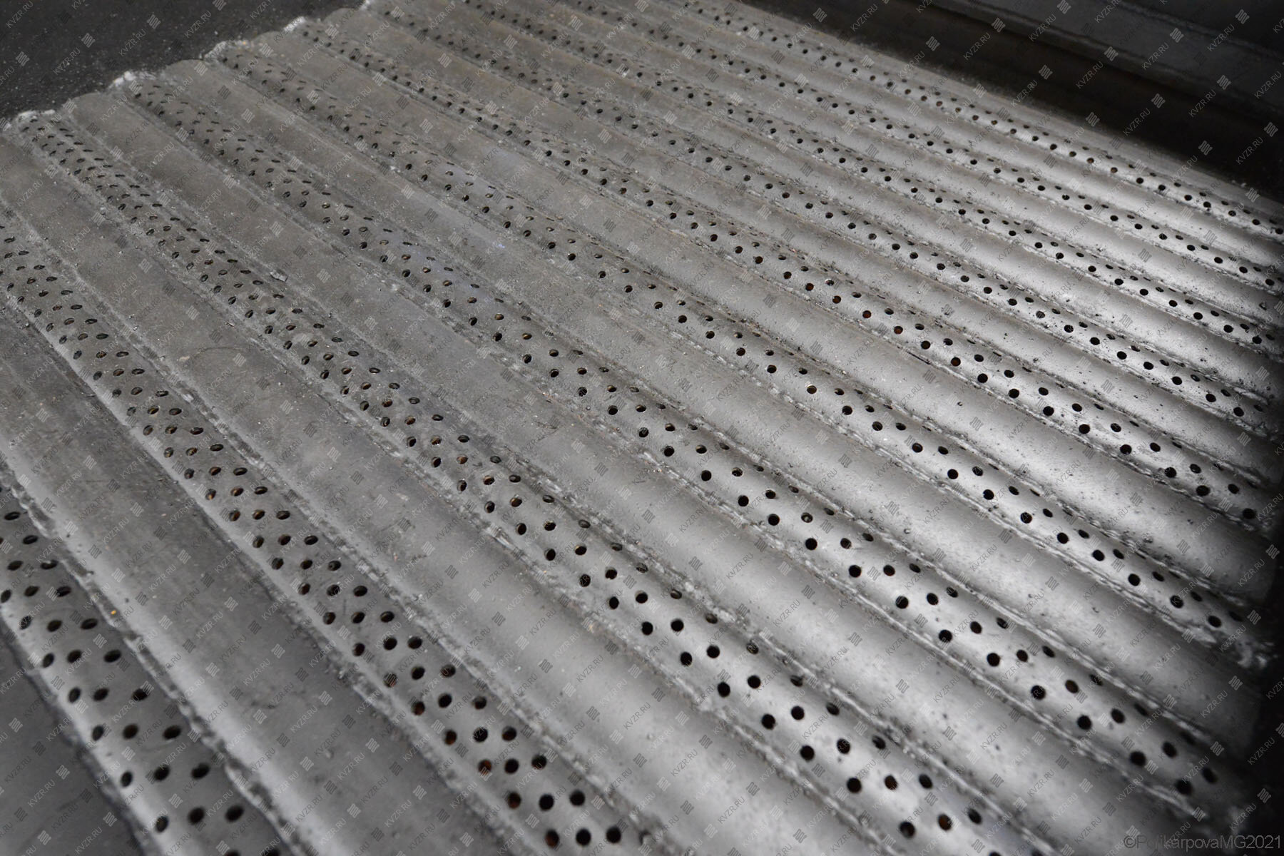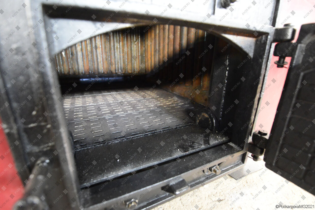 Топка ОУР - это низ топочной трубной части агрегата. Рама топки представляет собой ряд труб, по которым движется нагреваемая в агрегате вода, между которыми вварены полосы металла с отверстиями для подачи воздуха в топку. На водяных колосниках происходит сгорание топлива. За счет движения теплоносителя и воздуха трубы топки охлаждаются. Маленькие отверстия в полосе не дают проваливаться в зольник недогоревшему топливу. Котел твердотопливный дрова уголь с водяными колосниками имеет преимущество перед традиционной колосниковой топкой за счет более равномерно распределяемой области подачи воздуха в слой топлива и отсутствия провала золы в нижний короб агрегата. Механический и химический недожег топлива в данных аппаратах меньше, чем в традиционных. Особенно эффективно применение ОУР для сжигания низкокачественных углей и древесного топлива.
