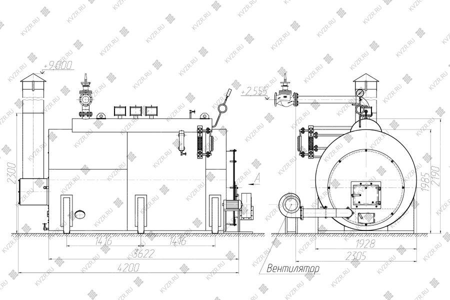 Паровой котел промышленный Магадан изготавливается стальным двухбарабанным вертикальным водотрубным с естественной циркуляцией с экранированной топочной камерой и конвективным пучком.
