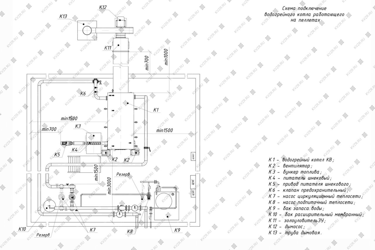Пелетный котел изготавливается водотрубным стальным, с бункером, шнековым питателем, вихревой топкой, котельным блоком с топочной камерой для горения и конвективными пакетами для нагрева воды до требуемой температуры.