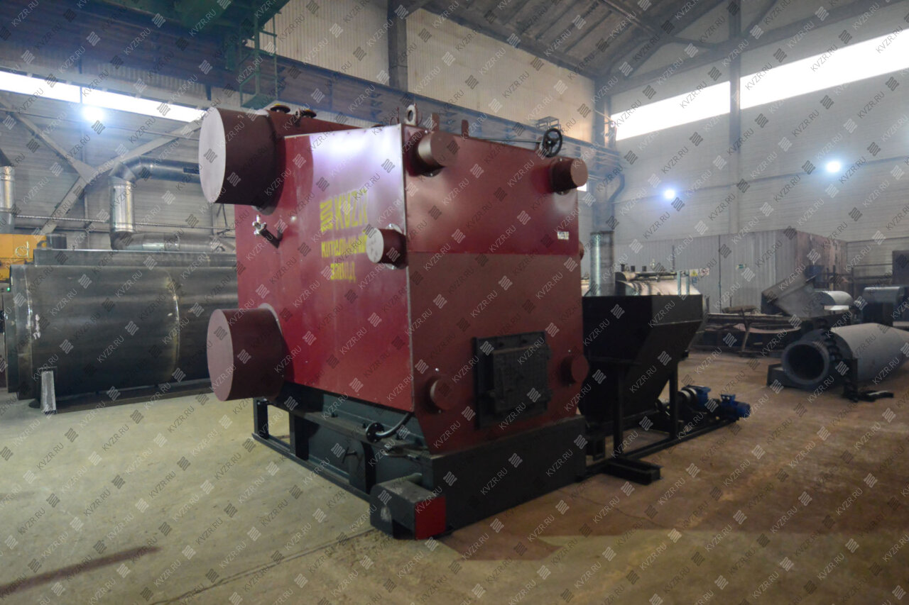 Под опилки, древесные отходы, щепу, лузгу и пеллеты устанавливается вихревая топка с бункером и шнековой подачей топлива.